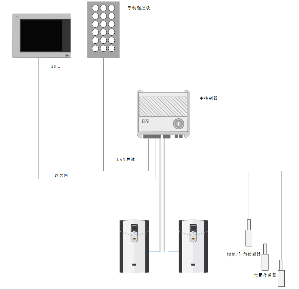 控制系統(tǒng)采用分布式CAN總線架構(gòu),包括:接觸器控制、變頻器控制、傳感中心監(jiān)測(cè)、數(shù)據(jù)遠(yuǎn)程通訊、遙控接收等多條CAN總線,這些都需要應(yīng)用豐富的CAN接口,X90標(biāo)配了4個(gè)CAN接口,以及標(biāo)準(zhǔn)以太網(wǎng)和USB口。各接口可根據(jù)需要進(jìn)行便捷的擴(kuò)展。